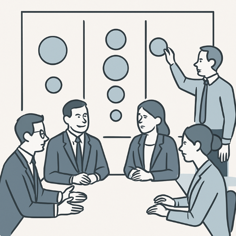 주요 사업, 제품·서비스를 정의하고 블루오션 시프트 추진 과정에 참 여할 사람을 선발하는 것부터 시작한다. 이 그룹에는 최소한 각 사업 부의 부서장이 포함되어야 한다. 선발된 사람들은 이 그룹에 자기 휘 하의 주요 부하직원 한두 명이 포함되길 원할 수도 있다. 이것은 선발 된 사람들의 마음을 든든하게 해줄 뿐 아니라, PMS 지도 작업에 임할 때 그들의 사업부 내에서 더 활발하게 생각을 조율하고 의견을 나눌 수 있다는 의미이기 때문에 긍정적이다.