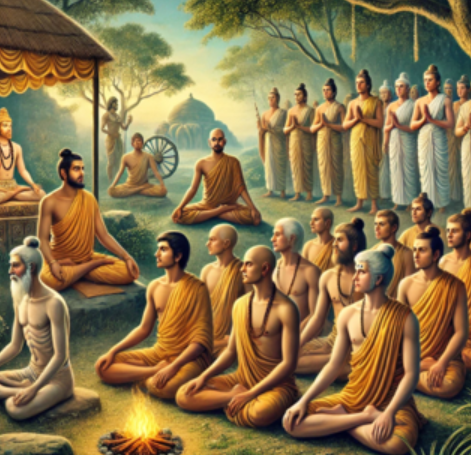 기원전 8세기 이후부터는 속세를 떠난 수도승들 이 무리를 지어 북인도의 숲을 떠돌아다녔는데, 이들 가운데 상당수가 불교, 자이나교 그리고 아 지비카에 흡수되었다. 이 방랑승들은 동료와 가족과의 연대를 포함한 사회와의 모든 고리를 끊 은 사람들이었다. 그들은 음식을 구걸하거나 깊은 숲속으로 들어가 과일과 채소로 연명했다.
