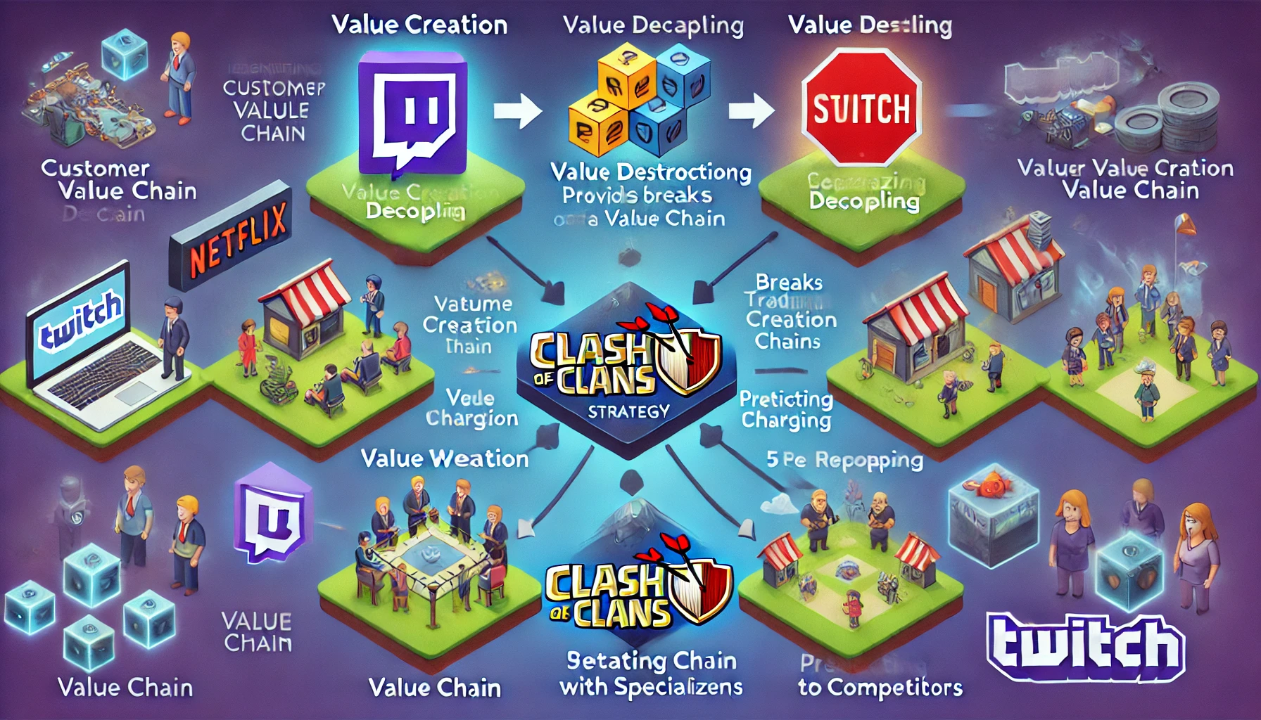 기존과 신생 기업이든 모두 적용되는 디커플링 5단계 공식은 다음과 같으며 1단계는 타깃 세그먼트의 고객 가치사슬을 파악하는 것으로 고객의 가치 사슬 중 유사한 특정 고객 그룹으로 세그먼트(Target segment)를 파악하고 세그먼트내 고객 가치사슬에서 벌어지는 활동들을 확인하고 모니터링 되어야 한다. 이때 주의해야 하는 것은 고객 가치 사슬(CVC)를 획일적으로 생각하여 구매 과정을 브랜드를 파악하고 매장, 구매처를 방문하여 구입하는 형태로 작성하면 구체적이지 않고 소비자가 언제, 어떤 방식으로, 어떻게 관심을 갖게 되는지? 고민하고 소비자의 인식, 관심, 욕망, 구매 과정에 반영되어야 한다. 또한 고객 가치 사슬(CVC)의 관련 단계를 식별을 못하는 경우가 있어 매 단계를 고객의 기준에 상세하게 묘사하고 있다면 소비자가 구매 과정에서 얼마나 복잡한게 구매를 하고 있으며 디커플링 옵션들이 얼마나 존재하는지를 알 수 있었습니다. 2단계는 고객 가치사슬을 가치적인 유형별로 분류하여 가치 창출, 가치에 대한 대가 부과, 가치 잠식의 경우와 같이 가격 협상하기나 구매 시운전, 시음 등의 활동에서 소비자를 위한 가치 창출 활동을 할 수 있도록 해야 함을 알 수 있었습니다. 3단계는 고객 가치사슬 중 취약점을 찾아 집중 공략을 해야 하며 미래적인 디커플러 들이라면 고객 가치 사슬(CVC)의 중요 단계를 확인 후, 현재 회사를 통하는 것보다 다른 회사를 통해 수행할 수도 있는 활동이 무엇인지를 파악하여 약한 사슬로 묶여진 활동들이 파괴하는 디커플링 주요 타깃들이 있는 것을 알 수 있었습니다. 4단계는 약한 사슬을 세분화하여 분리하는 것으로 고객에게 소비 활동을 분리하는 것이 가치 있음을 느끼게 만들어 전문화된 힘을 증폭시켜 달성하게 유도함을 알 수 있었습니다. 5단계는 경쟁 기업의 반응을 분석, 예측하여 선제 조치를 취해야 하는 것을 알 수 있었습니다. 즉 경쟁자들의 반응이 다양하지만 대부분은 기존 기업을 디커플러 들이 분리하고 재결합하는 것이고, 또 다른 하나는 고객에게 분리할 기회를 직접 제공하면서 선제적으로 분리하는 것임을 알 수 있었습니다. 이러한 디커플링 5단계는 디커플러가 파괴적인 사업 모델을 개발하고 연마하는 과정에서 실제로 무엇을 수행하는지를 명확하게 지시하고 있으며 기존 기업이 발생 가능한 위협을 평가할 때 필요한 사고적인 방법들을 제공하는 것을 알 수 있었습니다.